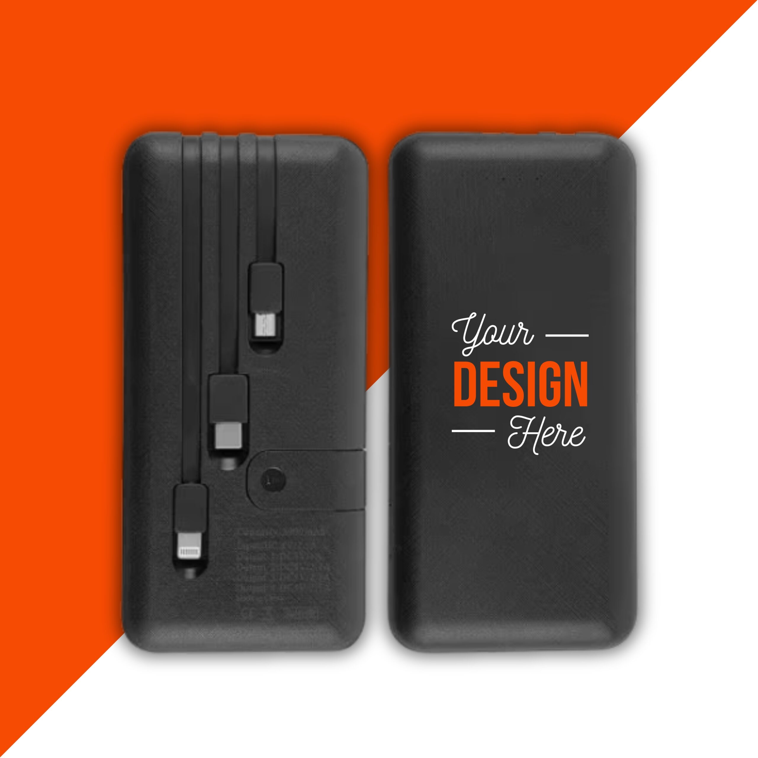 Built-In 3-in-1 Charging Cables: Includes Micro USB, Type-C, and Lightning connectors — no need to carry separate cables.